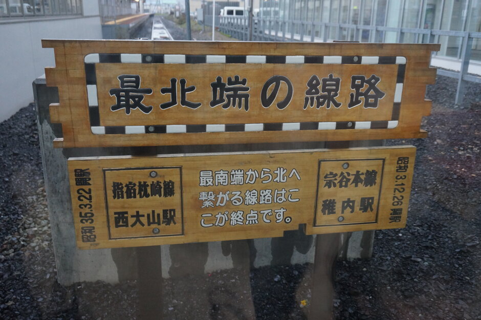 稚内駅前の最北端の線路案内板クローズアップ