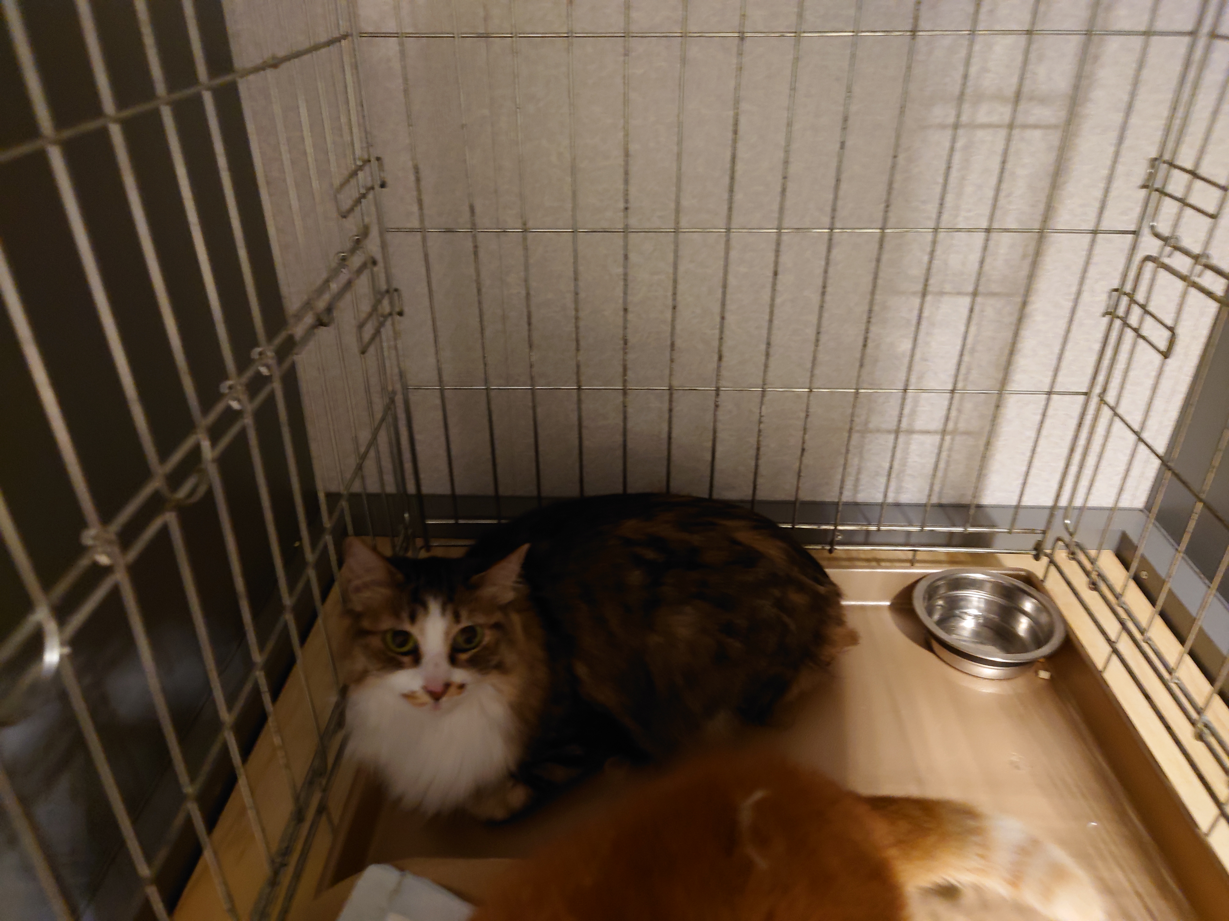 隣との仕切り版に、緑色の物体を発見し、バッタである事が確認できました。