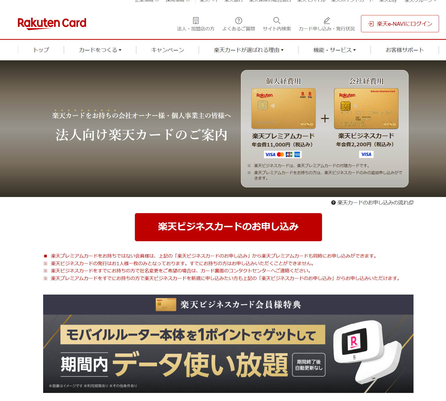 楽天ビジネスカード会員様 モバイルルーター特典窓口